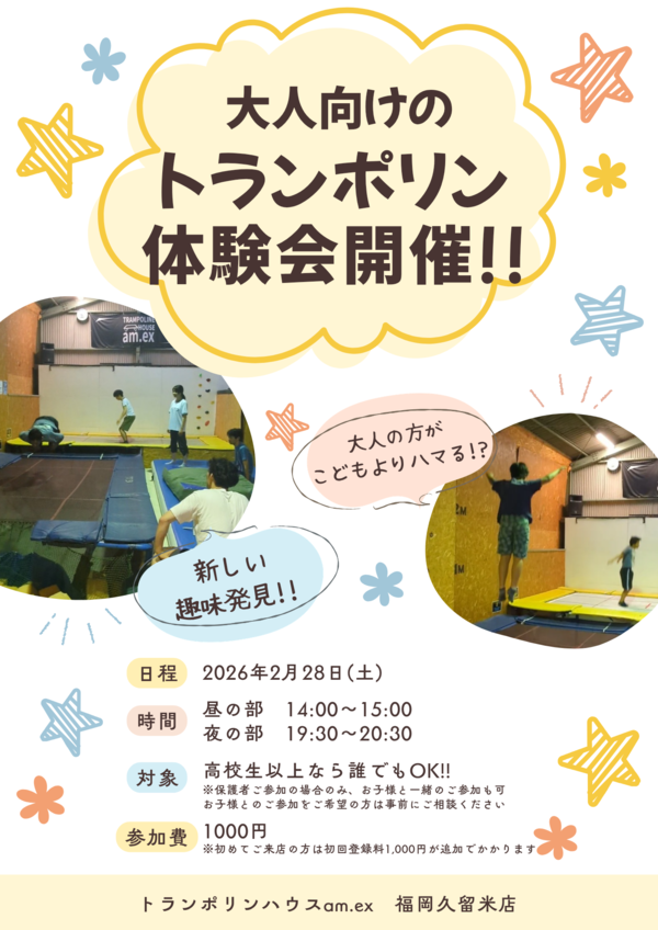トランポリンの楽しさを大人の方にも知ってほしい!そんな思いで企画しました(^^)
